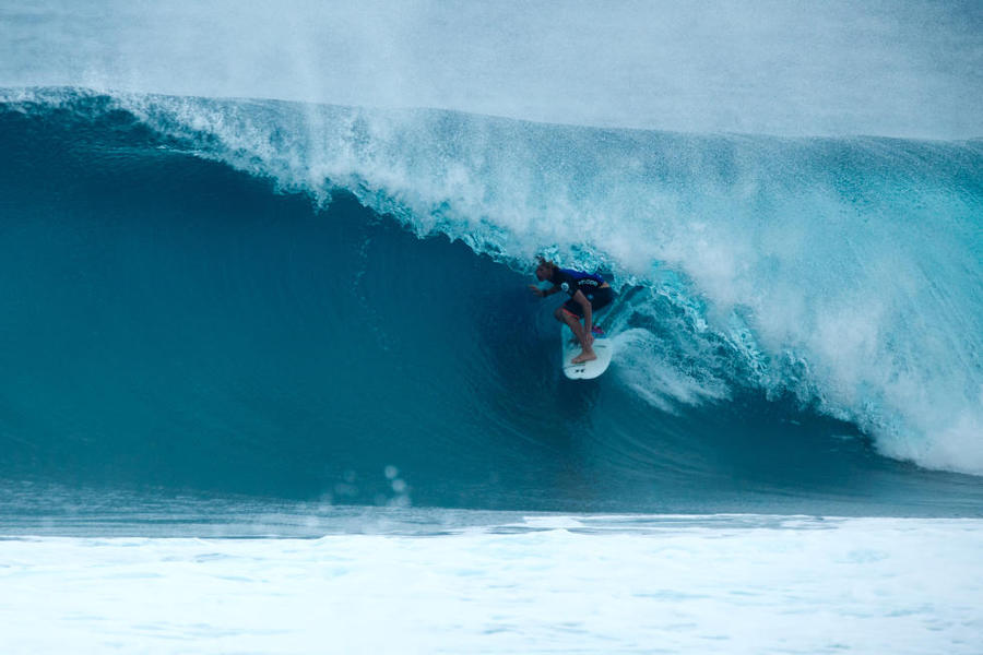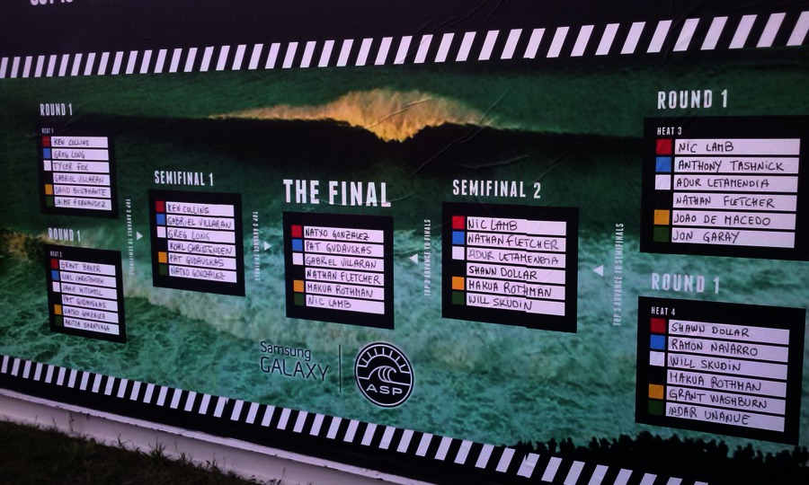 Estuvo bastante reñida la victoria entre el hawaiano y Lamb hasta que éste cojió una izquierda en una ola de derechas y que el cojer una izquierda supone quedarse en una zona de riesgo.