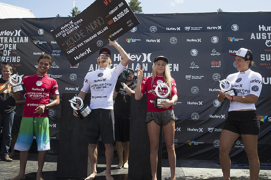 Kolohe Andino y Laura Enever han ganado el Australian Open of Surfing en categoría masculina y femenina respectivamente.